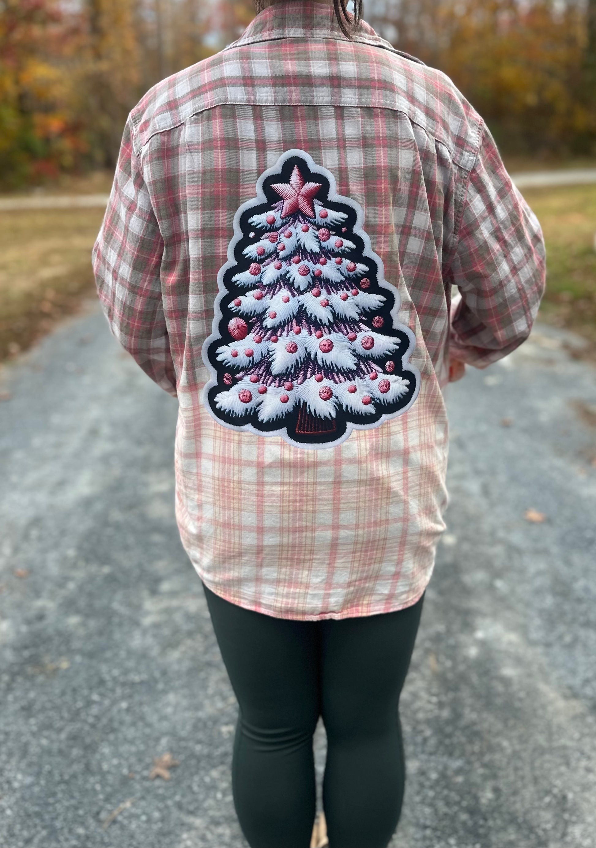 Christmas Tree Bleached Flannel Faux Embroidery Medium